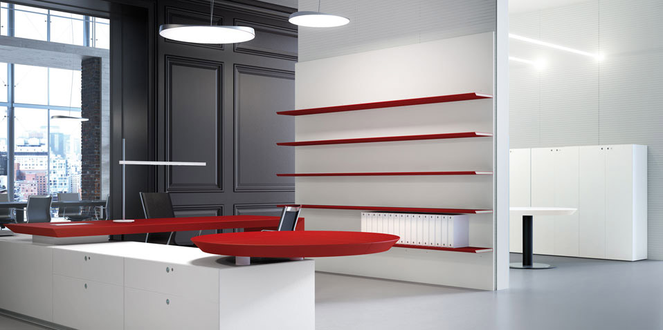 systemy szafek oraz szaf. Elementy kolekcji umożliwiają tworzenie zindywidualizowanych, rozbudowanych i niepowtarzalnych stanowisk dla zarządu firmy,