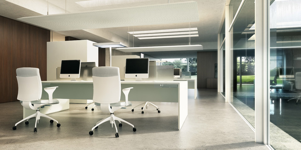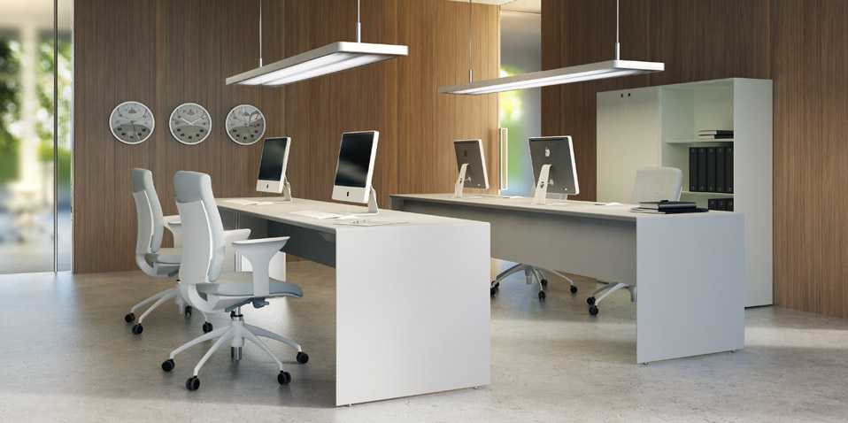 Posiadający gotowe rozwiązania pojedynczych stanowisk jak i z multiplikowanych dużych powierzchni dającym miejsce do pracy dla 4 osób przy jednym olbrzymim stole,