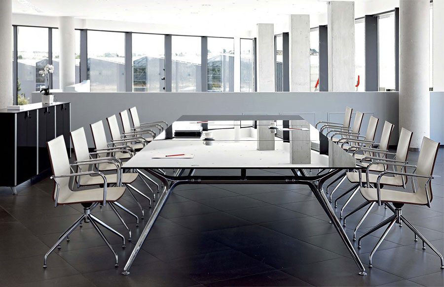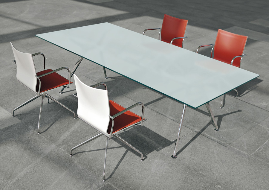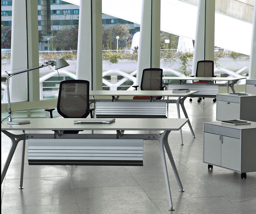Elegancja & Awangarda są razem zaangażowane w innowacyjnym programie, inspirowanym nowoczesną architektoniczną wizją minimalistycznego projektowania. Arkitek jest odpowiedzą na wpływ techniki i jej relacje z architekturą. Rozwój techniki i technologii, pozwala zorganizować tak pomieszczenia, gdzie każdy element ma pełnią określoną funkcję, ale nie wyrzeka się estetyki inspiruje we wnętrzach, łącząc miękkie krawędzie i narożniki z lekkim metalem. Cała konstrukcja systemu wykonana z aluminium jest dostępna w czterech wykończeniach: srebrnym, białym, polerowanym i chromowanym. Cienkie blaty tej kolekcji z odpornego 13mm laminatu kompaktowego CL z charakterystyczną czarną krawędzią lub 10 i 12mm szkła unoszą się na doskonałej konstrukcji tworząc niesamowity efekt pożądanej czystej i lekkiej formy. System wzbogacony o komody, szafki wraz ze stolikami i stołami konferencyjnymi oraz niezbędnymi pomocnikami do pracy.