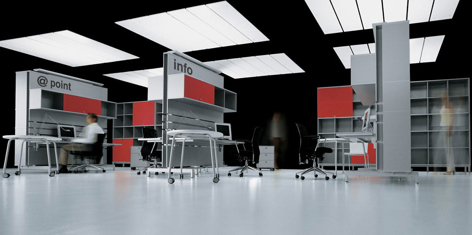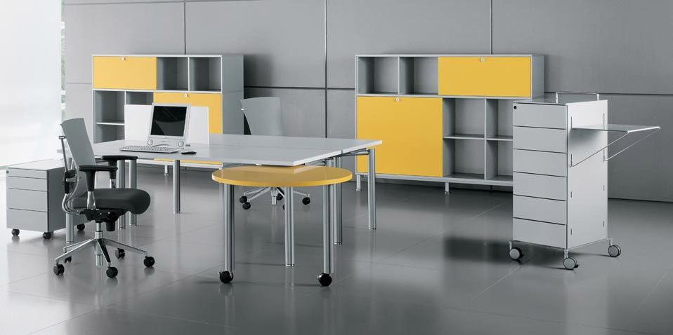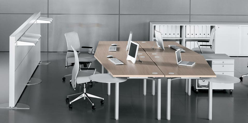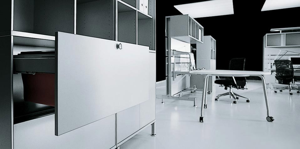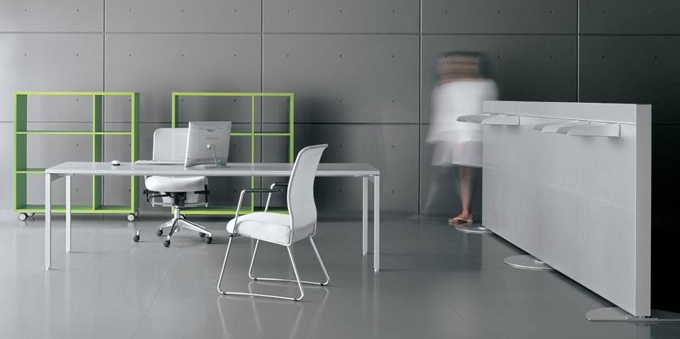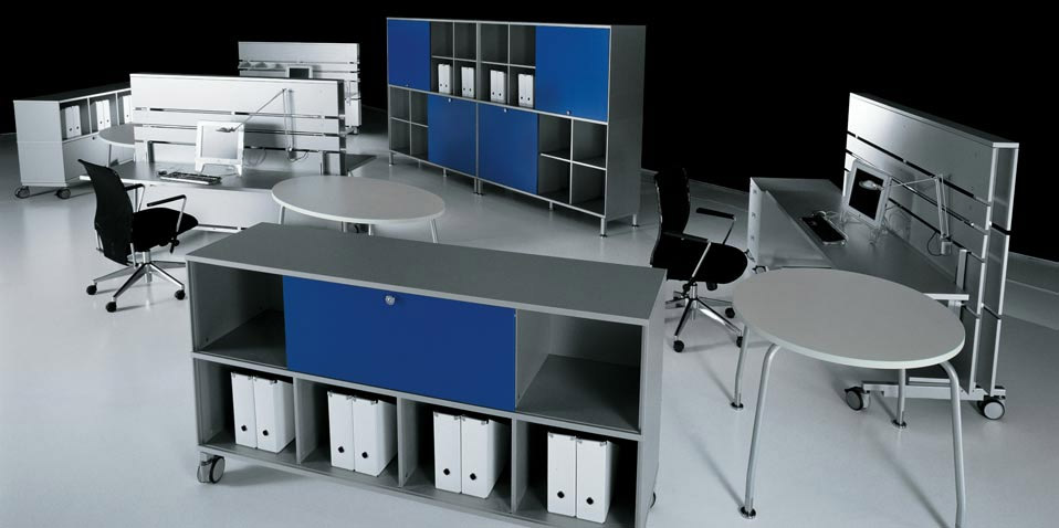 Oparty na 6 różnych stelażach stołów oraz stabilnych wolno stojących, wydzielających przestrzeń ściankach od 96 do 216 cm pozwalających na mocowanie biurek, szafek oraz szaf daje nam nieograniczone możliwości. Różnorodność modułów i funkcjonalność tego systemu jest zdumiewająca.